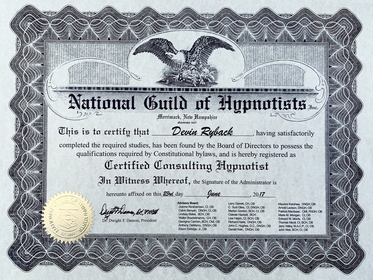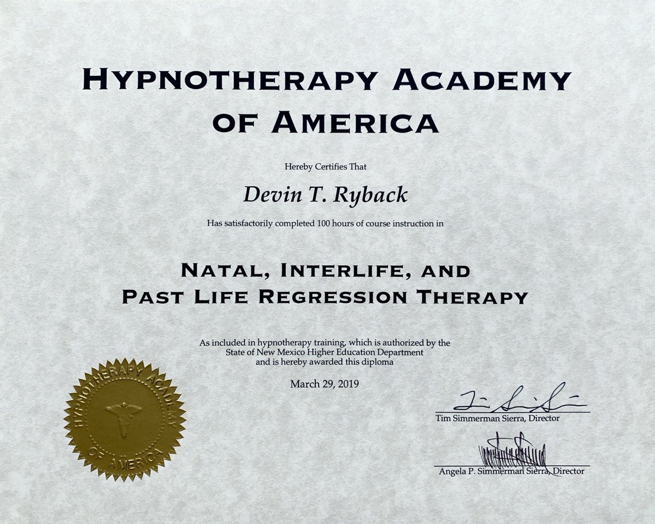 Devin Ryback has an interdisciplinary Bachelor of the Arts degree in Integrative Healing: a combination of psychology, philosophy, religious studies, and holistic wellness. He has certificates of clinical hypnotherapy and medical support hypnotherapy, and a certificate of natal, inter-life, and past life regression therapy.